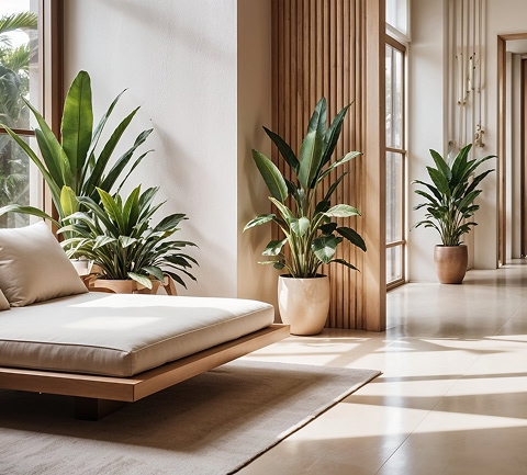 This 15,000 sq ft corporate office in Bangalore's tech hub was designed to foster innovation and teamwork. The space features flexible work zones, collaborative areas, quiet pods, and recreational spaces. Biophilic design elements include living walls, natural light optimization, and indoor plants. The reception area makes a strong brand statement with custom lighting installations and brand colors integrated throughout. Ergonomic furniture, acoustic treatments, and sustainable materials create a healthy, productive work environment.